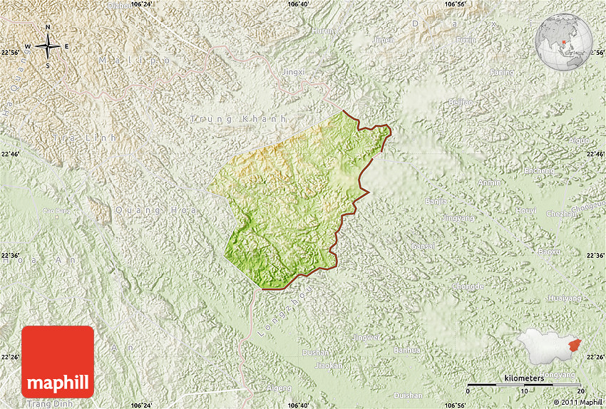 Each map type offers different information and each map style is designed for a different purpose. Read about the styles and map projection used in the above map (Physical Map of Ha Lang, lighten).