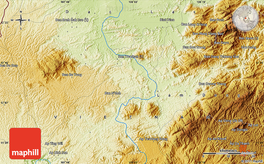 Use the buttons for Facebook, Twitter or Google+ to share a link to this physical map of Buôn Dren (2). Maphill is the largest map gallery on the web. The number of maps is, however, not the only reason to visit Maphill.