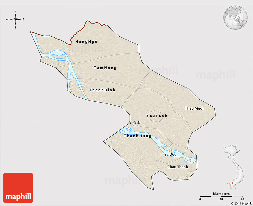 The value of Maphill lies in the possibility to look at the same area from several perspectives. Maphill presents the map of Dong Thap in a wide variety of map types and styles.