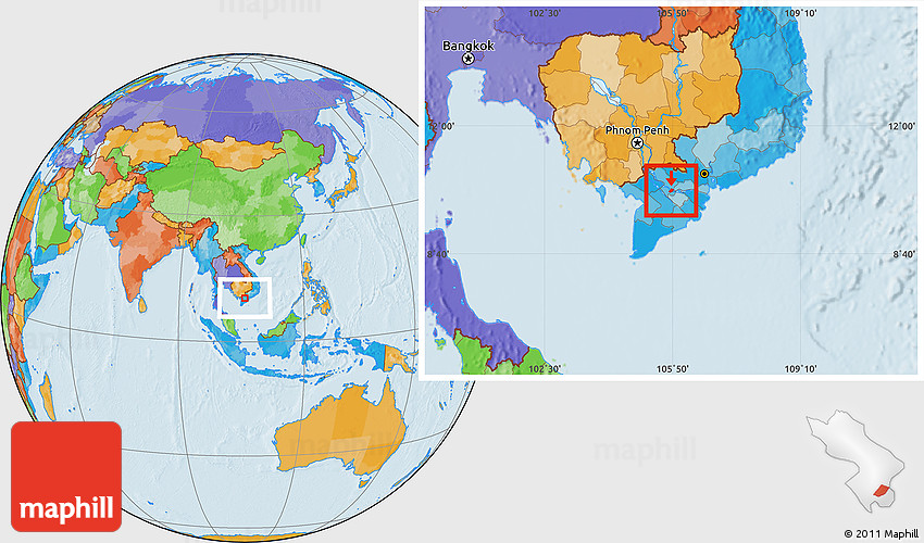 Maphill is a collection of map images. This image combines a political map with the globe centered on Sa Dec. Use the buttons under the image to switch to different map types.