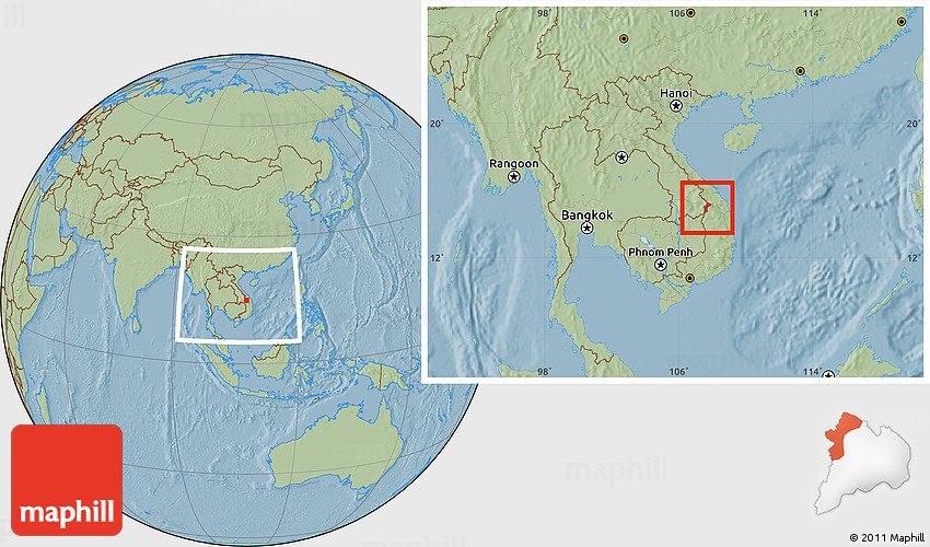 Each map type offers different information and each map style is designed for a different purpose. Read about the styles and map projection used in the above map (Savanna Style Location Map of Dac Glay, within the entire country, hill shading).
