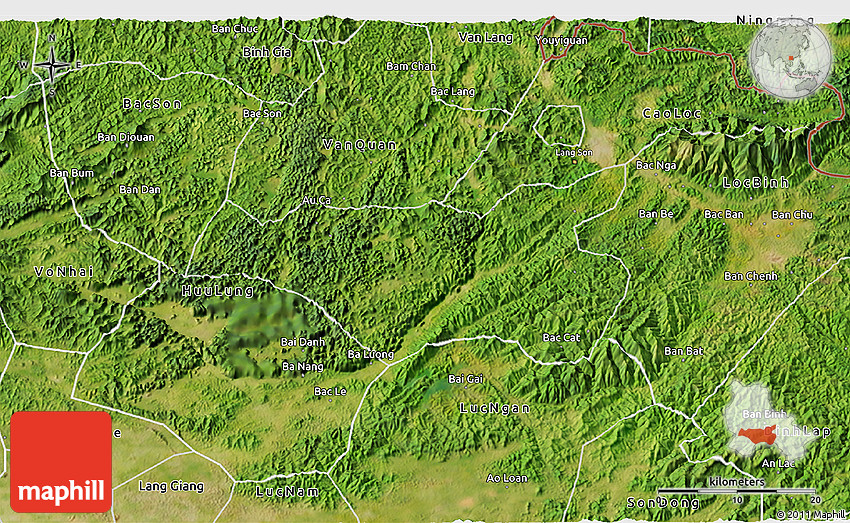The 3D satellite map represents one of several map types and styles available. Look at Chi Lang, Lang Son, Vietnam from different perspectives.