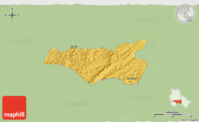 Each map type offers different information and each map style is designed for a different purpose. Read about the styles and map projection used in the above map (Savanna Style 3D Map of Chi Lang, single color outside).