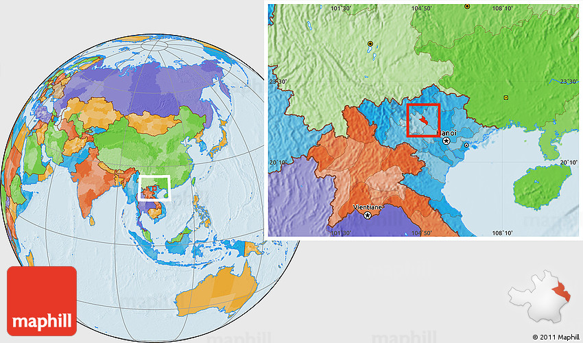 Maphill is a collection of map images. This image combines a political map with the globe centered on Yen Binh. Use the buttons under the image to switch to different map types.