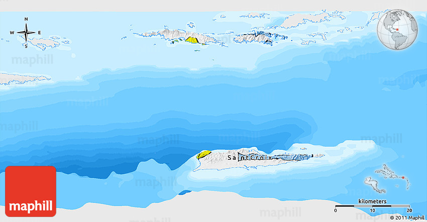 Each map type offers different information and each map style is designed for a different purpose. Read about the styles and map projection used in the above map (Flag Panoramic Map of Virgin Islands, single color outside, bathymetry sea, flag rotated).