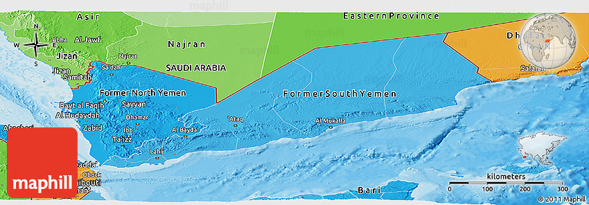 Embed the above political shades panoramic map of Yemen into your website. Enrich your blog with quality map graphics. Make the web a more beautiful place.
