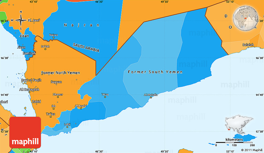 Maphill is a collection of map graphics. This simple outline map of Yemen is one of these images. Use the buttons under the image to switch to more comprehensive and detailed map types.