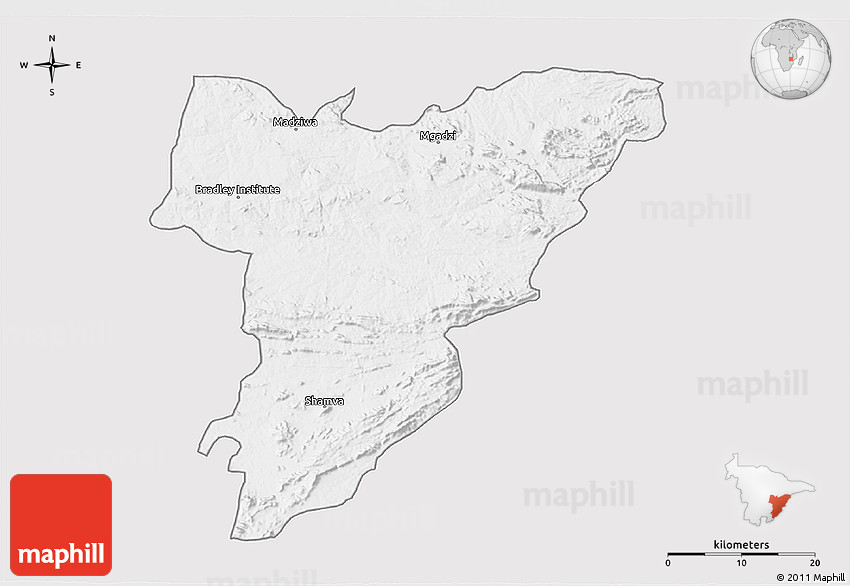 Each map type offers different information and each map style is designed for a different purpose. Read about the styles and map projection used in the above map (Silver Style 3D Map of Shamva, single color outside).