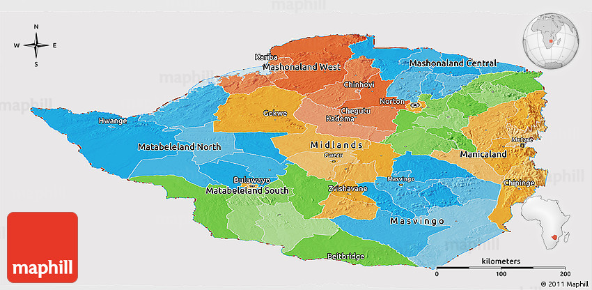 The panoramic political map represents one of many map types and styles available. Look at Zimbabwe from different perspectives.